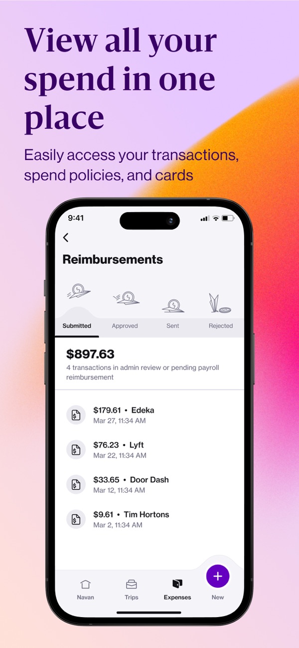 • Navan corporate cards automatically capture and categorize transaction details so there’s no need to submit most expense reports.