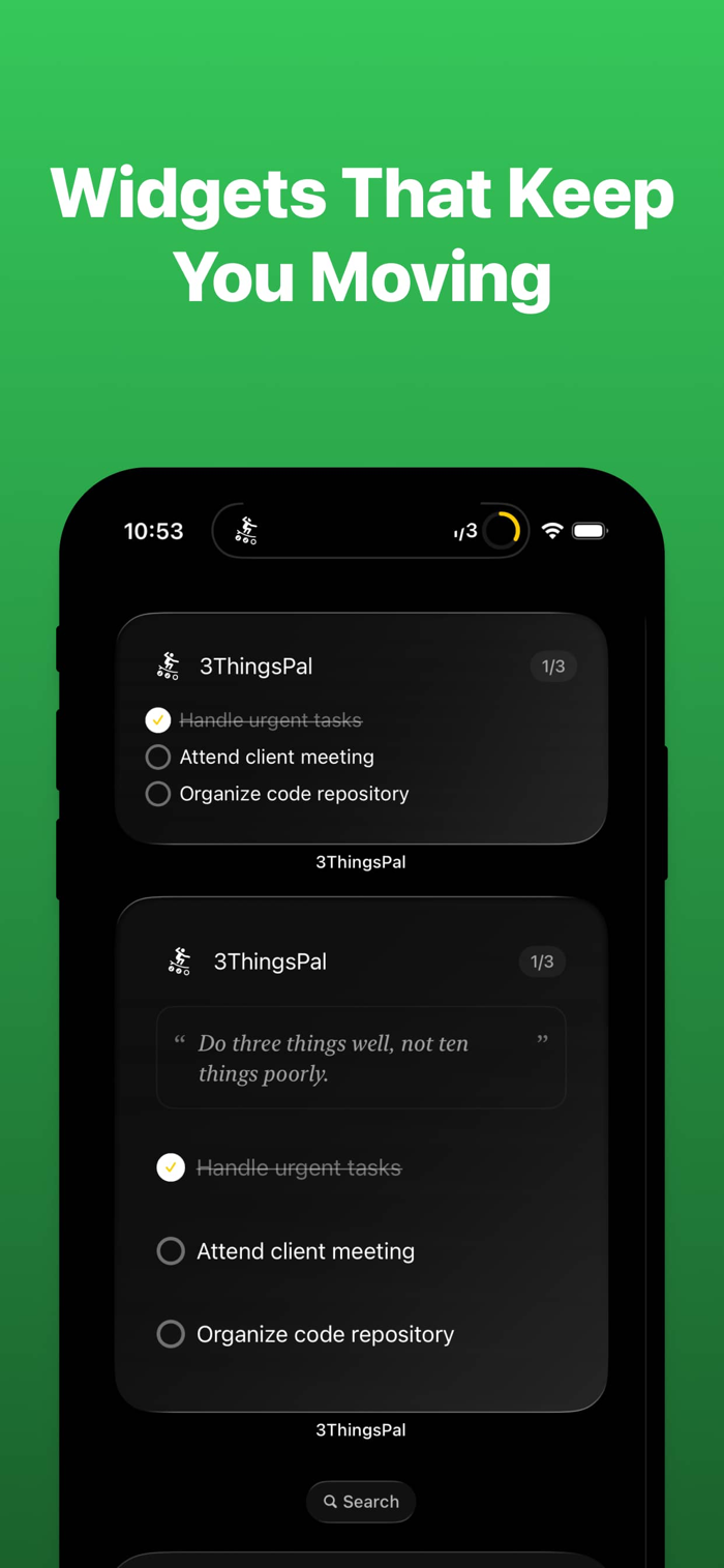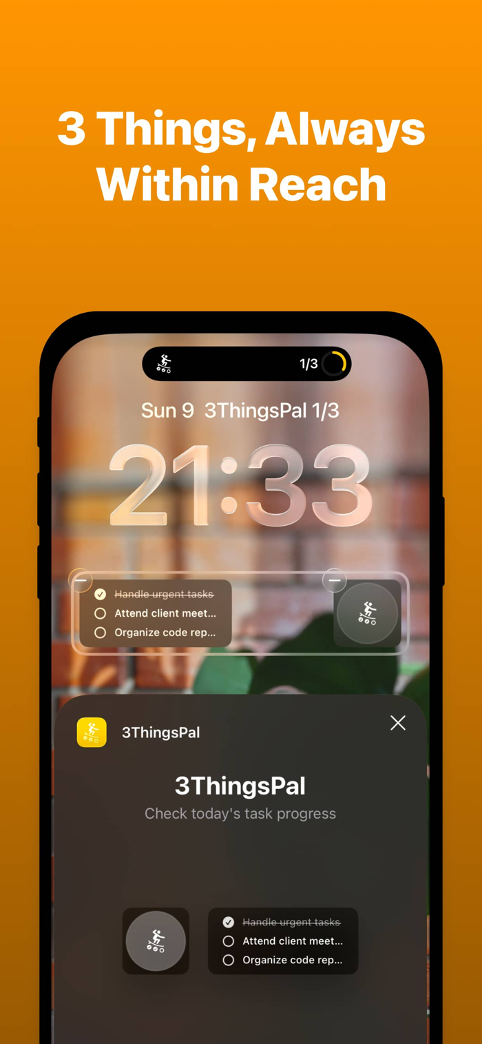 3ThingsPal 助你掌控生活节奏,聚焦当下最重要的三项任务。专为 iPhone 和 Apple Watch 打造,通过主屏幕小组件和锁屏实时活动,让计划可视化。具备专注工作流、Apple Watch 支持、温柔提醒、个性化定制等功能,还有可视化进度,隐私至上。Premium 会员可解锁完整创意心流体验,有月度和年度订阅计划,帮你“少做多得”,专注重要之事。