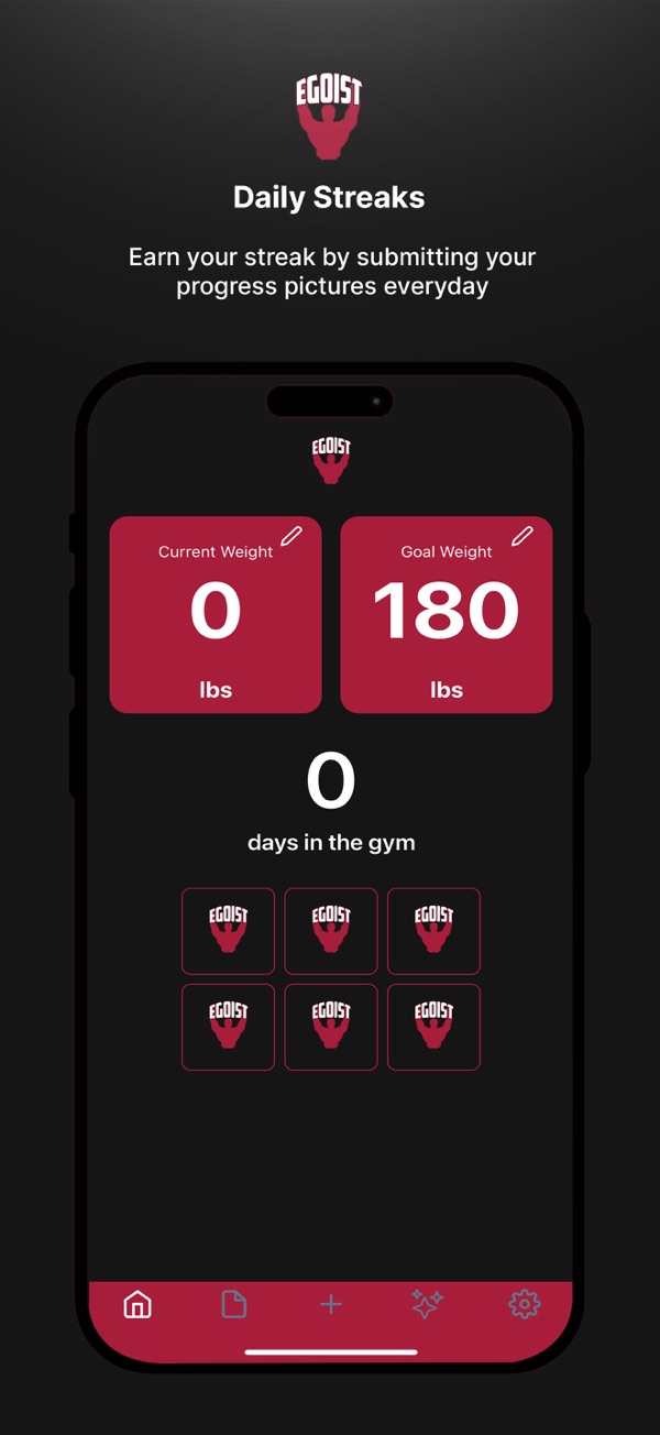 Egoist助力个人健身之旅可视化。能轻松追踪健身房锻炼进展,每日拍摄进展照片,App自动合成周或月进展视频。具备每日进展图片、进展图片目录、生成个人进展视频、个人资料、 streak功能等。可帮你追踪、比较并庆祝健身历程每一步,让你真正欣赏自己的努力,赶快下载,让每一次进步都有意义。