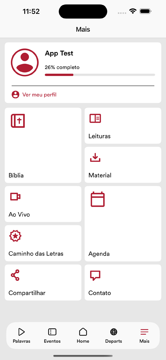 - Conecte-se com a igreja através dos grupos de interesse, receba conteúdo direcionado e obtenha sua carteirinha exclusiva.