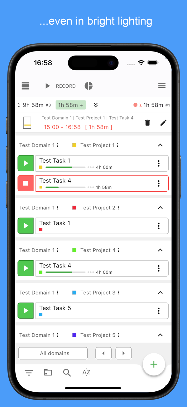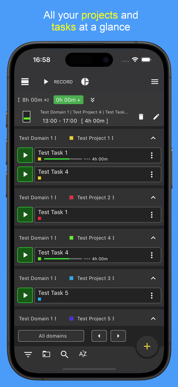 This product enables effortless time tracking. It allows easy switching between projects and tasks, provides on-the-fly statistics. Features include creating projects and tasks, entering unique time entry details, recording multiple tasks simultaneously or manually entering time ranges, editing timeline data, organizing entries by domains/projects/tasks, turning domains on/off, generating on-the-fly reports, optional backup, exporting/importing CSV data for analysis, time estimation, and ongoing calculation of time spent as a percentage. It's completely ad-free, and the Pro version offers unlimited features.