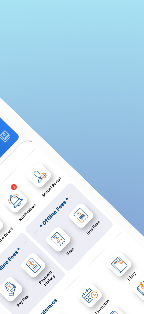 该产品是教师、家长及管理员登录面板。家长可在线支付学费,监控学生考勤、成绩单等学业表现。教师能进行在线成绩录入与考勤操作。管理员可监控所有功能并获取完整报告。用户登录凭证由学校提供(仅通过网络创建)。