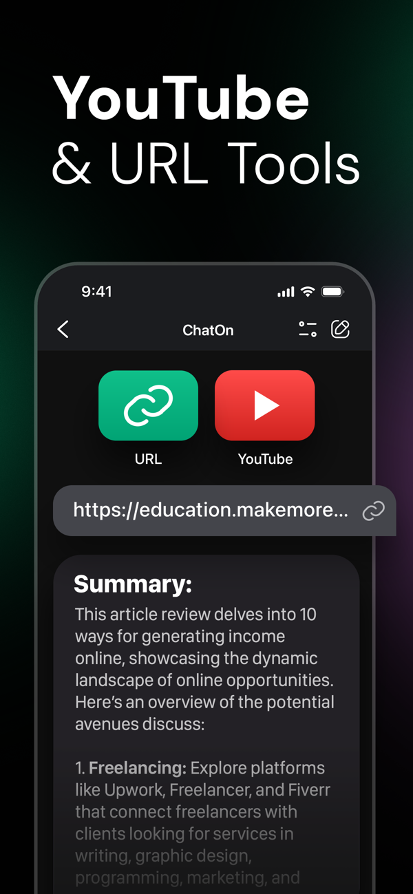 ChatOn是基于GPT-4o、Claude 3.5及DeepSeek模型的聊天AI和虚拟助手。能帮写邮件、演讲稿等各类文案,提供写作思路;可在线查信息;总结、改写、翻译文档;实现文本转图像、照片分析;支持移动端与网页端同步;能总结YouTube视频内容、检查语法拼写、创作社交媒体帖子、识别图像文本。