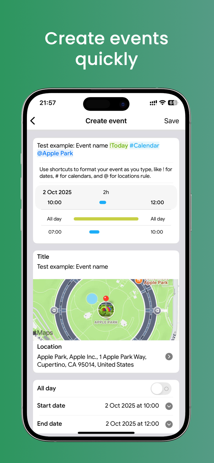 - See your date events and tasks together in the main list
