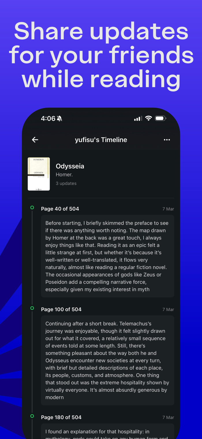 • Post reading updates and keep a personal reading journal