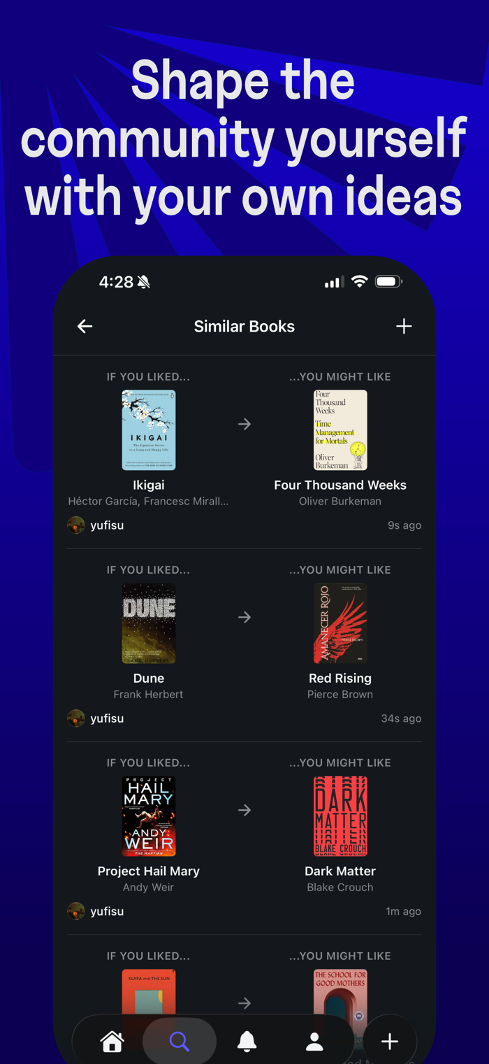 • Discover books through social recommendations