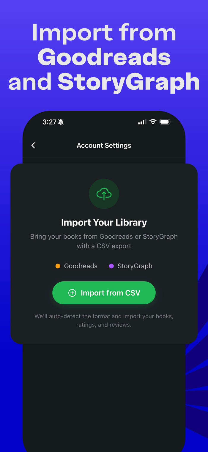• Track books across Want to Read, Currently Reading, and Finished