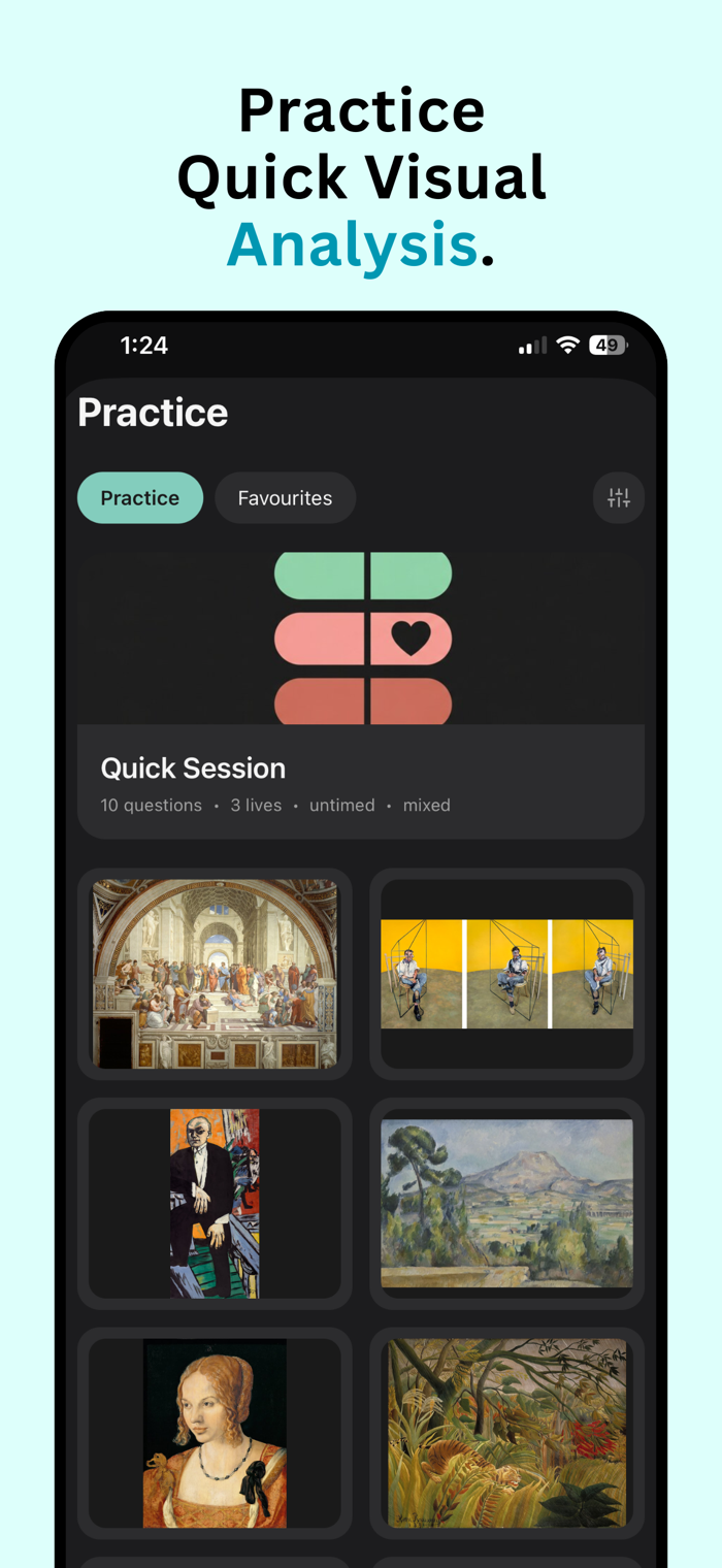 Instead of reading long explanations, you learn by seeing, identifying, and responding to real artworks.