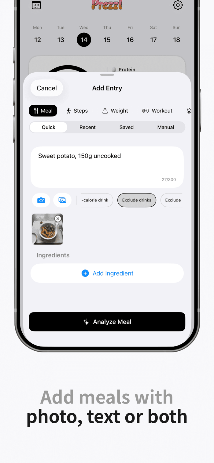 Prezzl is the intelligent calorie tracker that adapts to your life. Log meals in seconds with photo, text, or barcode – then edit any ingredient your way. Prezzl adapts to your life – not the other way around.