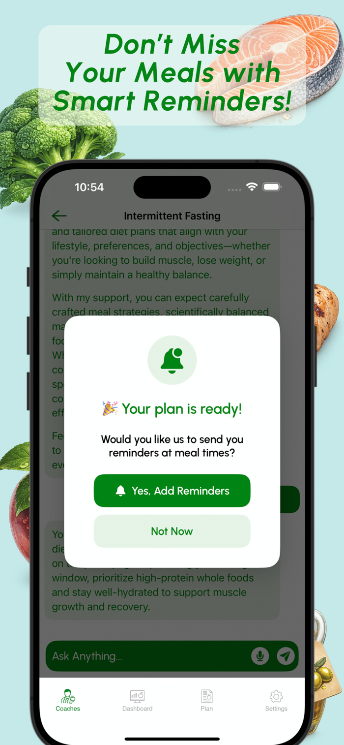 Smart reminders help you stay consistent with your meal plan and maintain your routine.