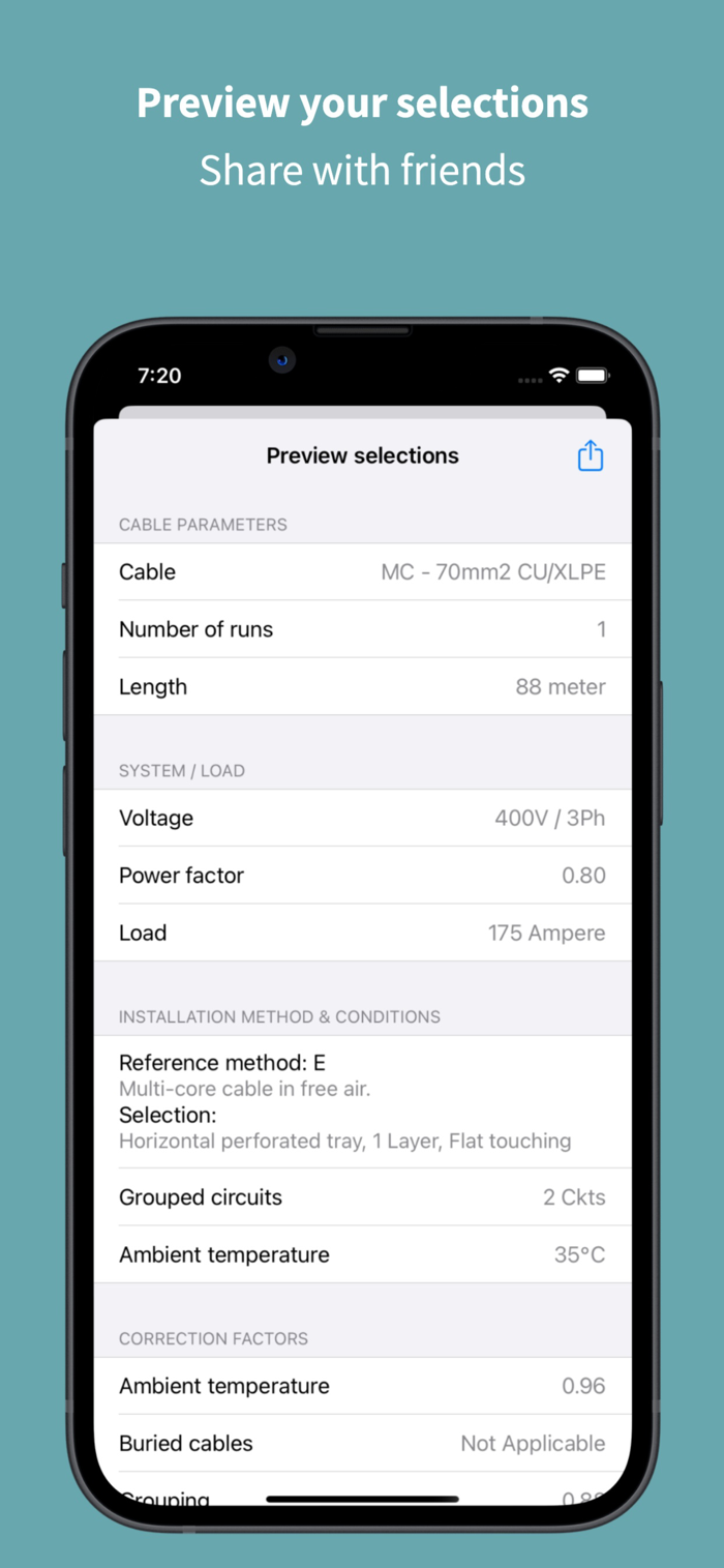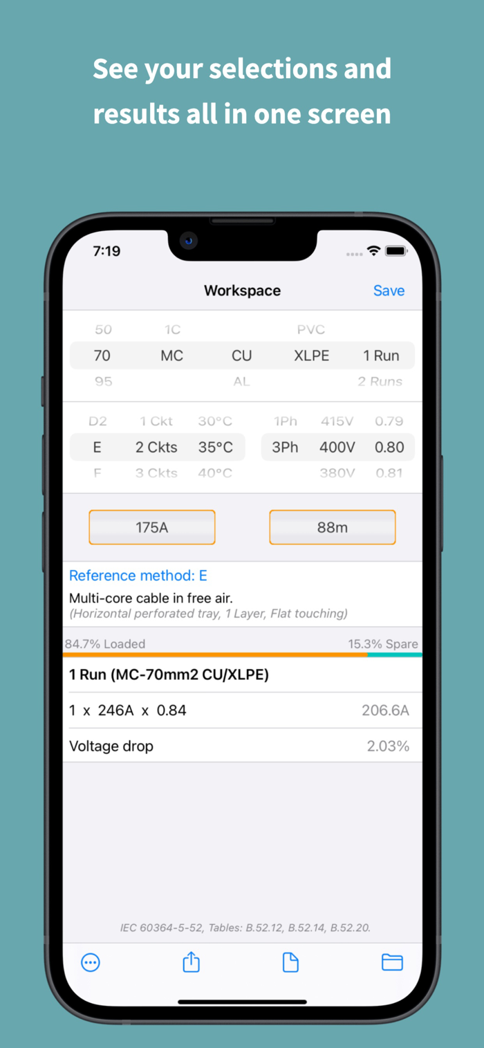 使用电缆选择器应用程序,所有输入数据和参数都在一个屏幕上就绪。只需滚动选择器即可在选项之间导航并立即获得结果。