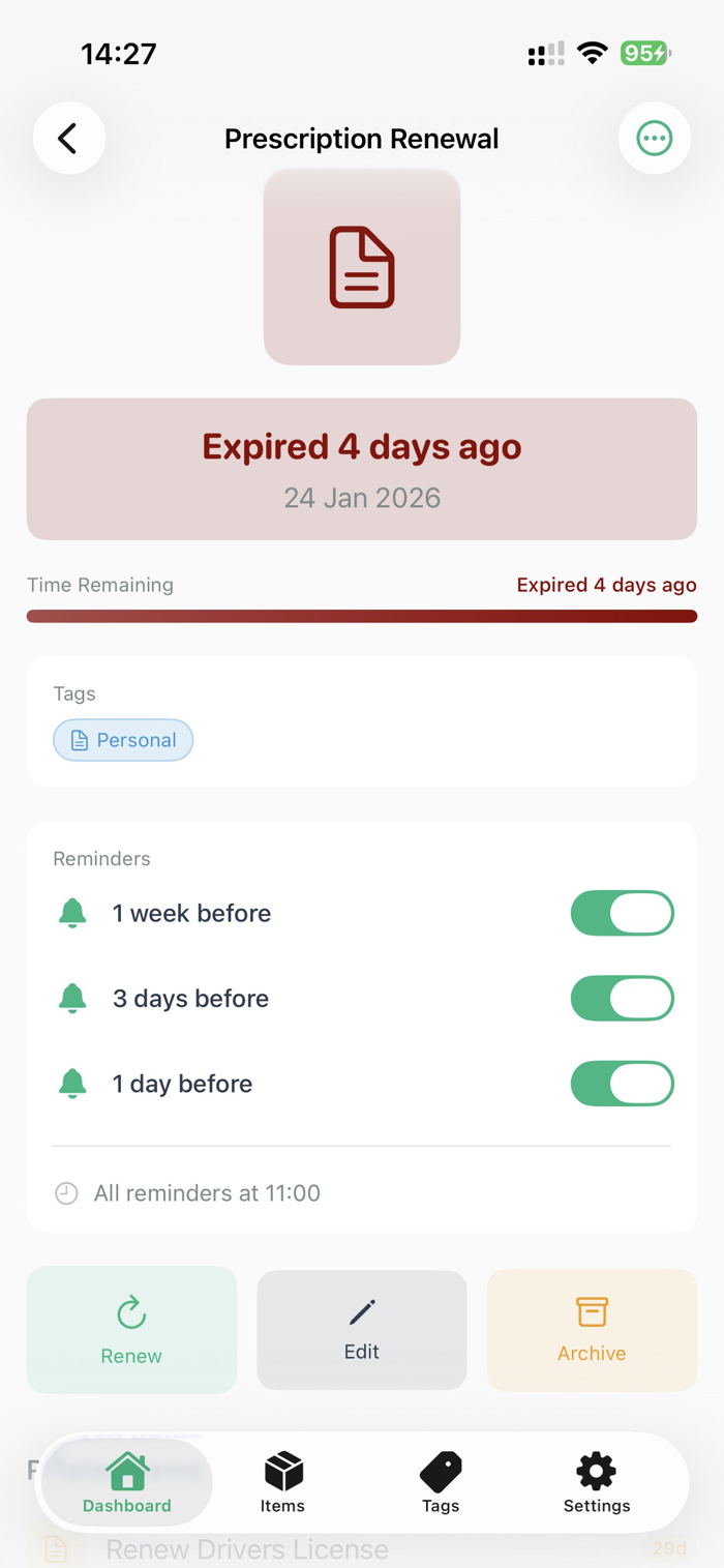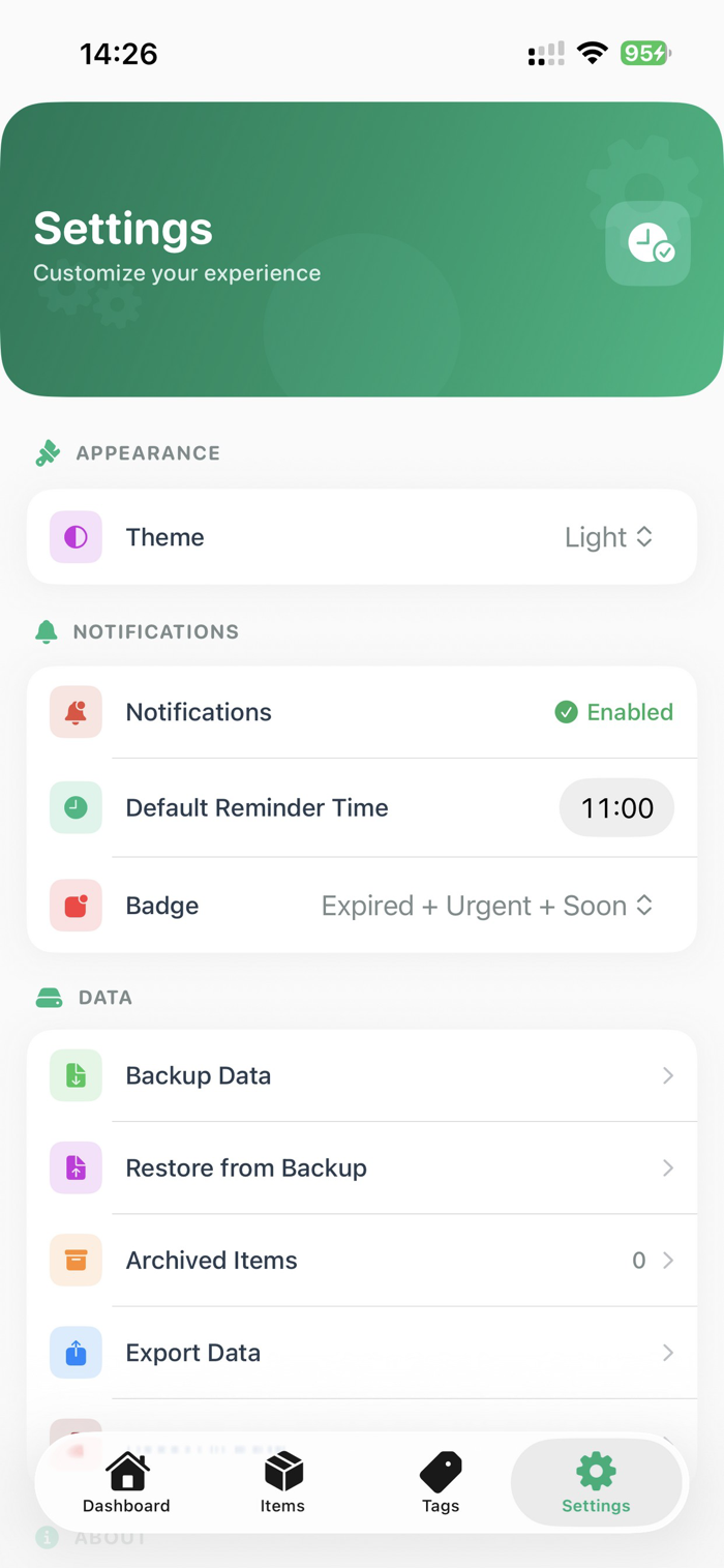 非常适合追踪食品杂货、药品、化妆品、文件、订阅、保修单以及任何其他有到期日期的东西。