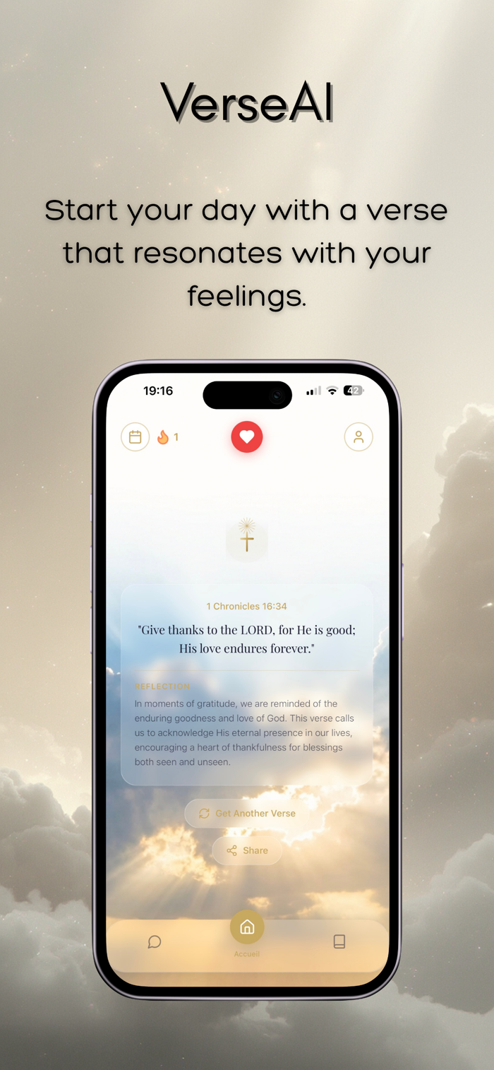 VerseAI is more than just a Bible app. It is a daily companion for Christians who want to feel closer to God, find peace in difficult moments, and build a consistent spiritual routine.