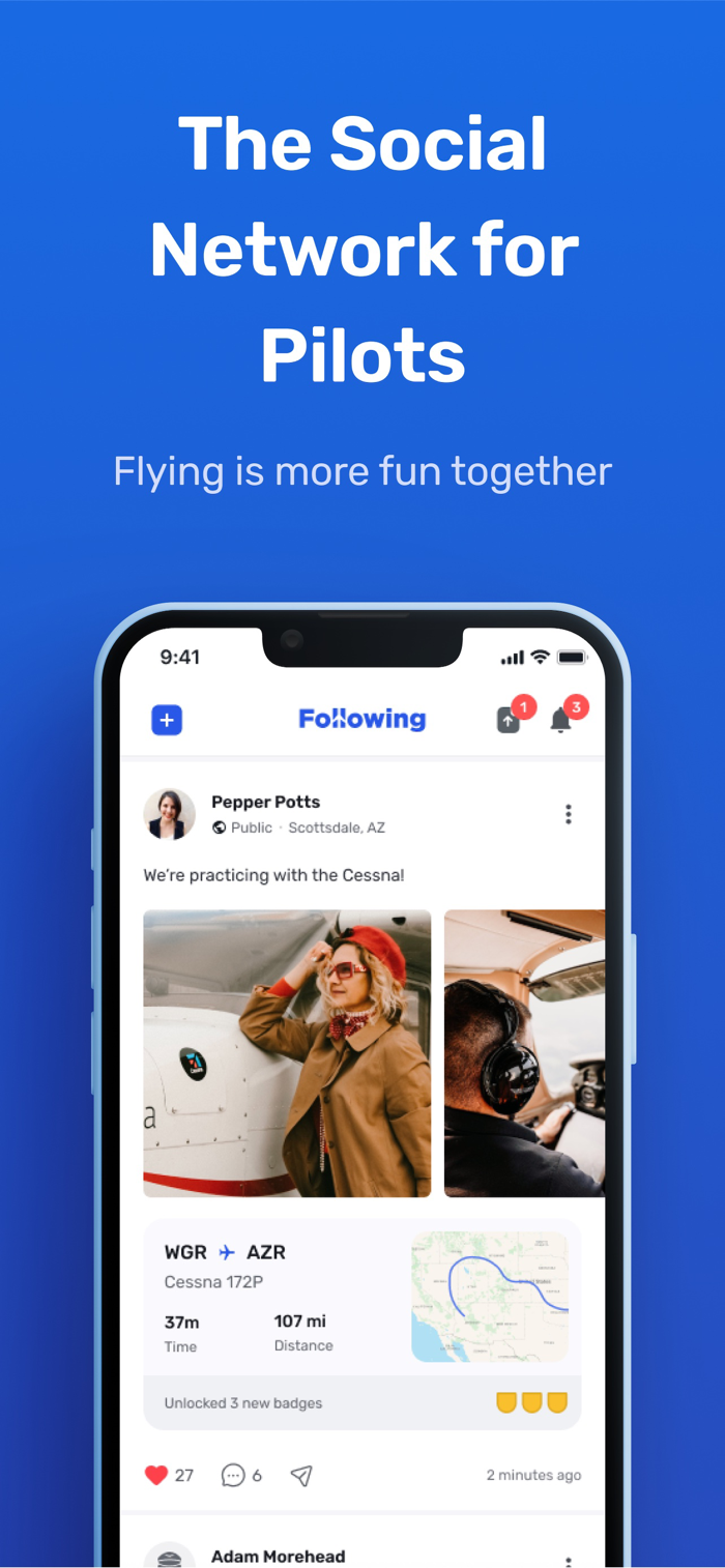 Following is a social network for pilots. Share your flights with your friends and connect with people at your local airport.