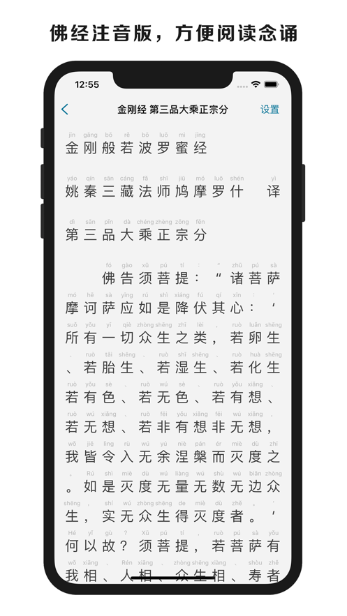 · 藏经阁:收集了大部分注音版(拼音)经文、佛学入门,方便阅读念诵;