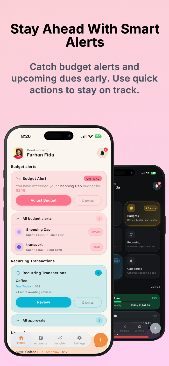 - Smart analytics for cash flow, spending trends, and monthly performance