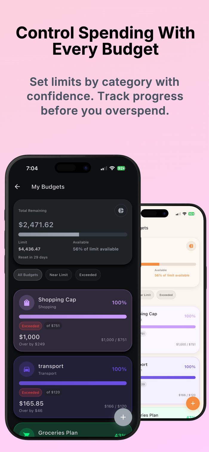- Budget planner with real-time budget progress and overspending alerts