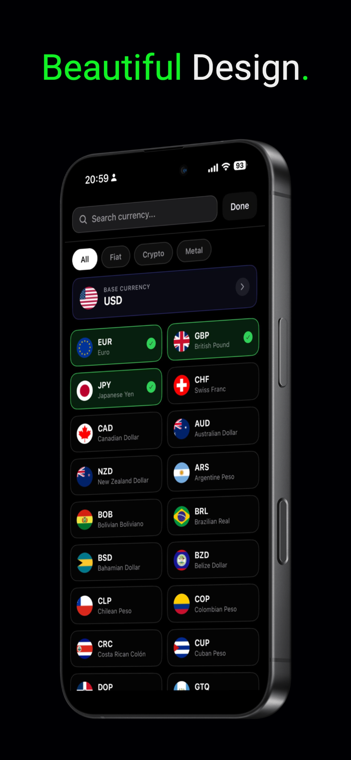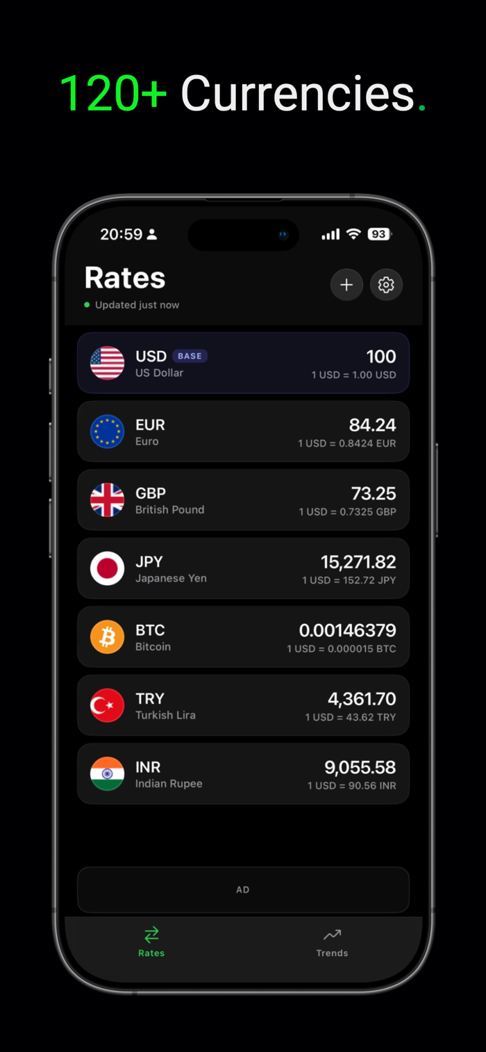 Currency Converter Mobile可在数秒内依据多数据源实时汇率换算任何货币。出行、外汇交易或查看当日汇率都适用,设计精美、速度极快且完全免费。能获取超150种世界货币的准确实时汇率,数据源自多个金融API确保可靠准确。有交互式图表及趋势功能,可查看六个时间框架的历史汇率数据。还内置计算器,能快速计算兑换值,输入金额可即时看到所选货币的换算结果。