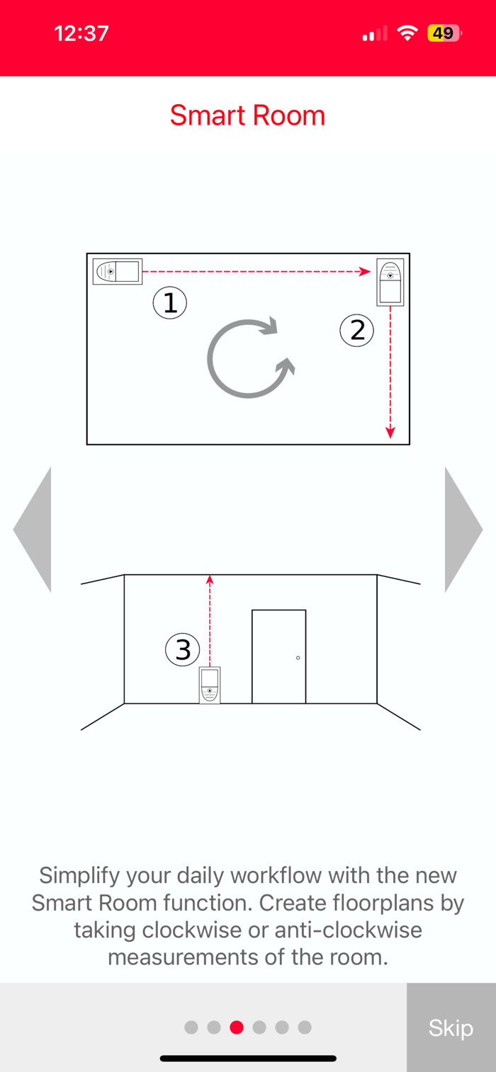 Smart Room makes it possible to create accurate floor plans simply by taking clockwise or counterclockwise measurements of a room. Once all measurements are taken, the app automatically generates the plan. The diagonals feature will further enhance accuracy.