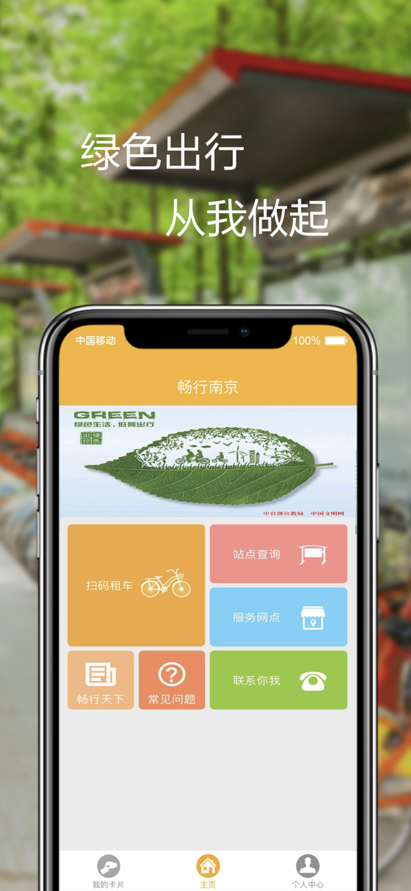 畅行南京 app 是基于南京公共自行车的绿色交通共享互联网应用,可绑定及查询卡片,提供周边站点实时信息、服务网点信息。能记录骑行运动,支持业务咨询反馈。依托全市超 1600 处站点和 5 万辆公共自行车资源,为南京市民及中外游客提供便捷、低碳出行服务。
