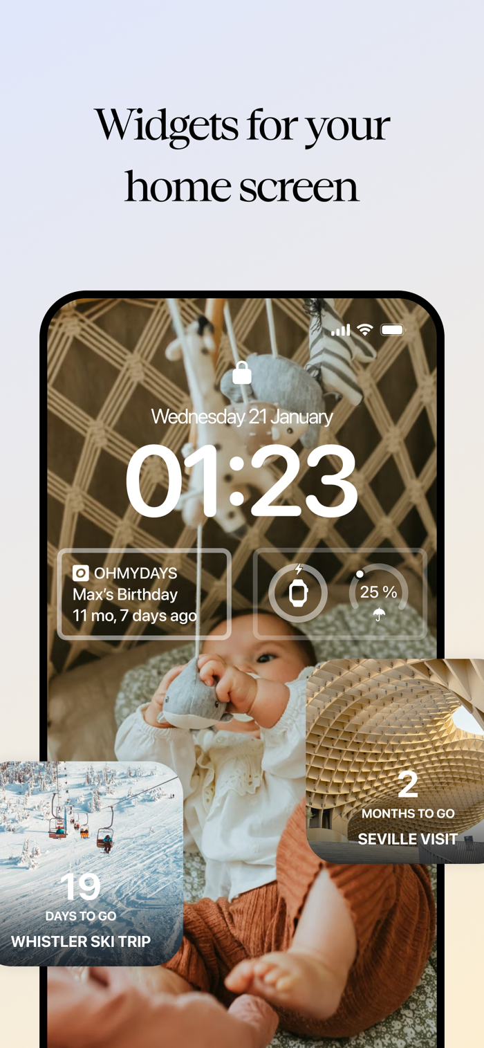 OhMyDays 可帮助你倒数或正数到生活中的重要时刻,如生日、节日等。它有一个漂亮的计数器,可显示距离特殊时刻的天数、周数等。你可以用自己的照片个性化活动,添加带完整文本格式的丰富笔记,使用主屏幕和锁屏小部件,与日历同步,并以年度计划模式查看。这是一种直观呈现和庆祝每个里程碑的简单方式。