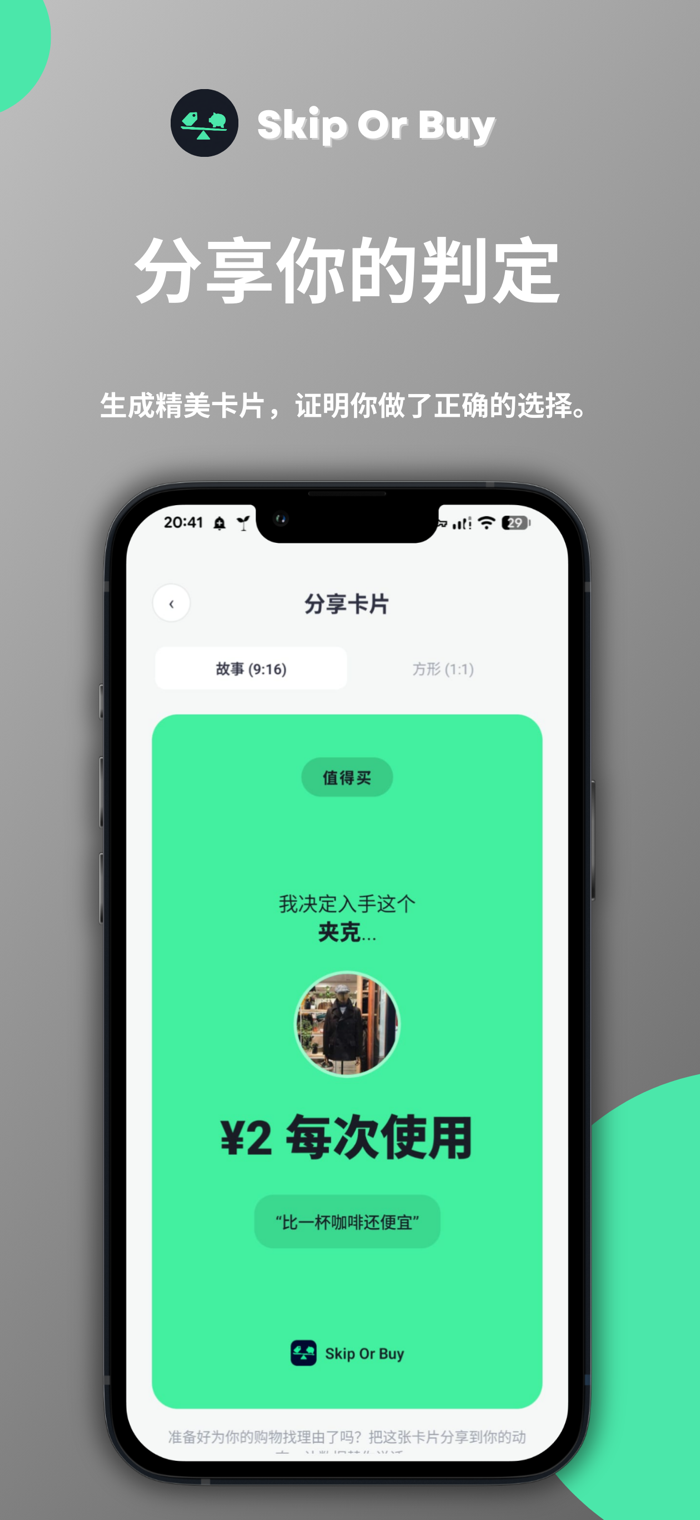 Skip Or Buy 是一款单次使用成本计算器,几秒钟内给你答案。输入价格,选择分类,立即查看真实的单次使用成本——并获得清晰的"购买"、"再想想"或"跳过"建议。