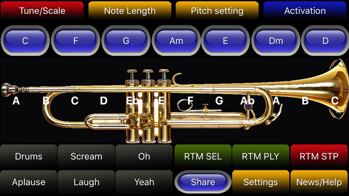 The only real Trumpet simulator app with all notes and scales for different Jazz , Blues , Major and Minor scales !