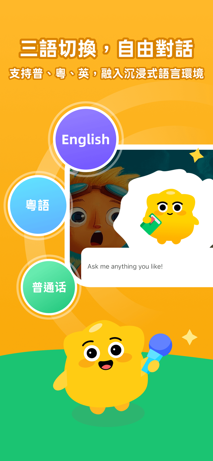 支援英語、普通話、粵語自由切換,在互動伴讀與自然對話中,實現沉浸式語言啟蒙。