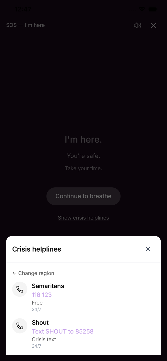 • Access SOS support — Quickly connect with crisis resources when you need immediate help.