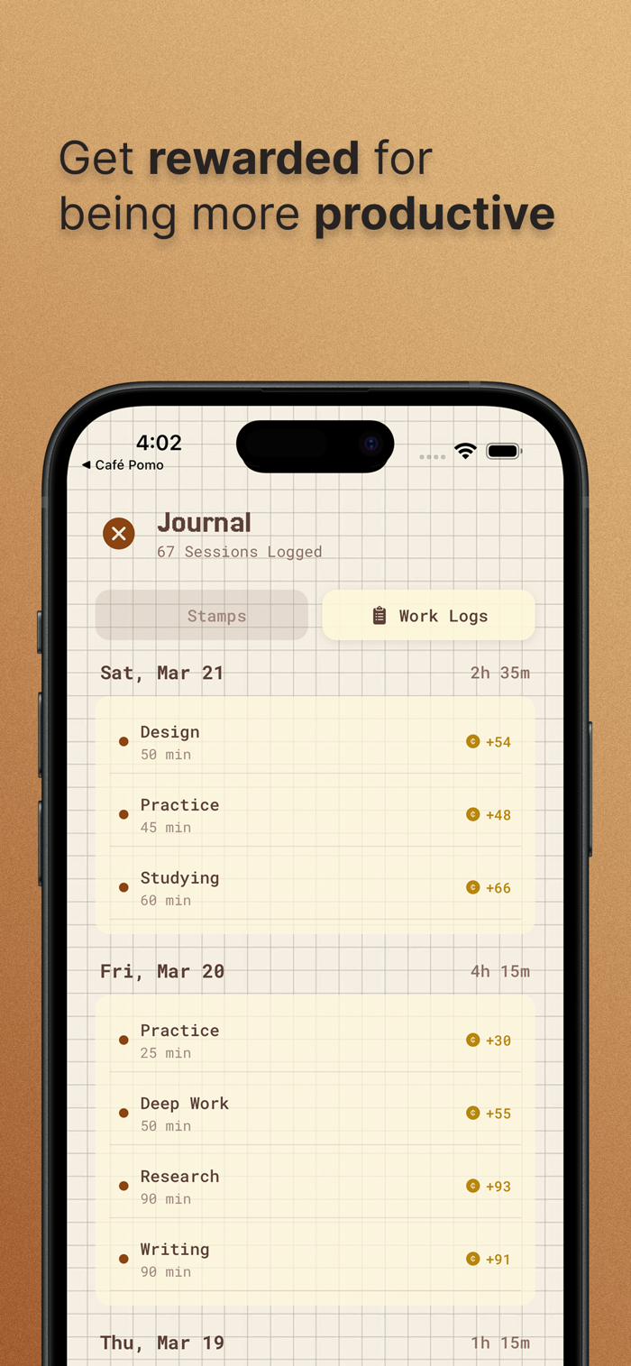 Earn achievements and collect stamps for being productive: