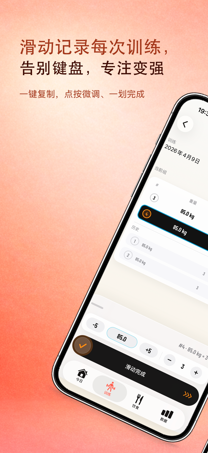 如铁是一款本地优先的力量训练记录应用。即点即达的复制和修改以及快速的滑动记录,无需键盘操作。