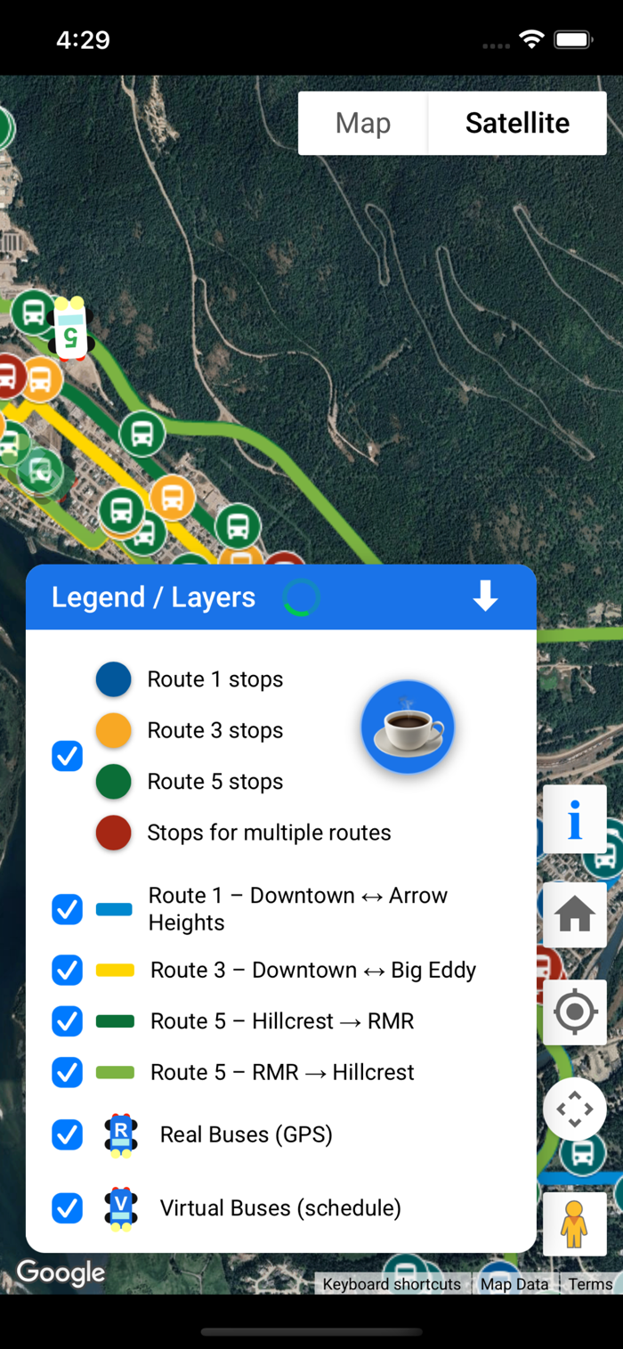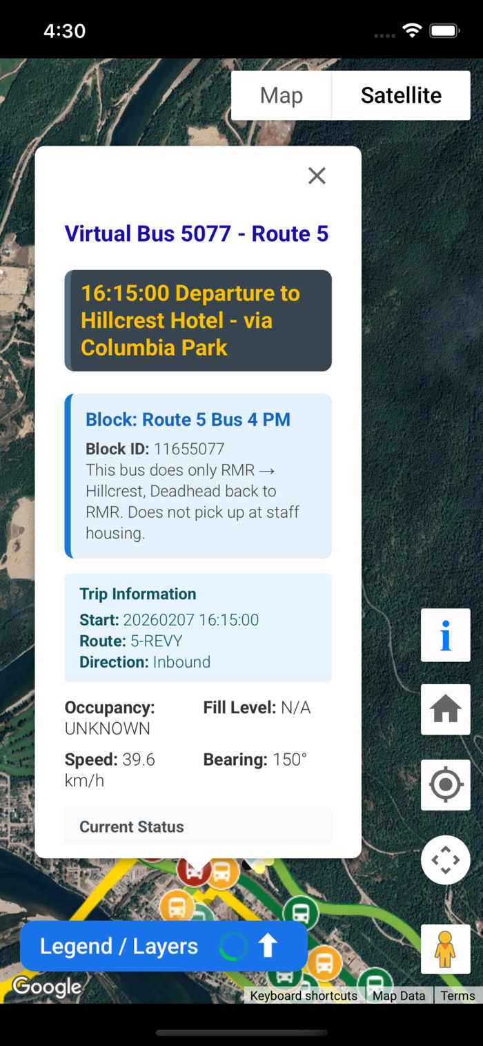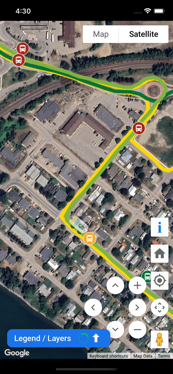 这款应用借助谷歌地图和卑诗省公交开放数据,为在卑诗省 Revelstoke 乘坐公共交通出行提供最佳导航。它是第三方创建,与谷歌、卑诗省公交及 Revelstoke Transfers 无直接关联。多数公交有“Next Ride”系统,部分未装则不在屏幕显示。点击公交站图标可查看更新后的时刻表,会随季节更新。图例/图层信息框可筛选出行路线。开启精确位置会设蓝点定位用户位置。