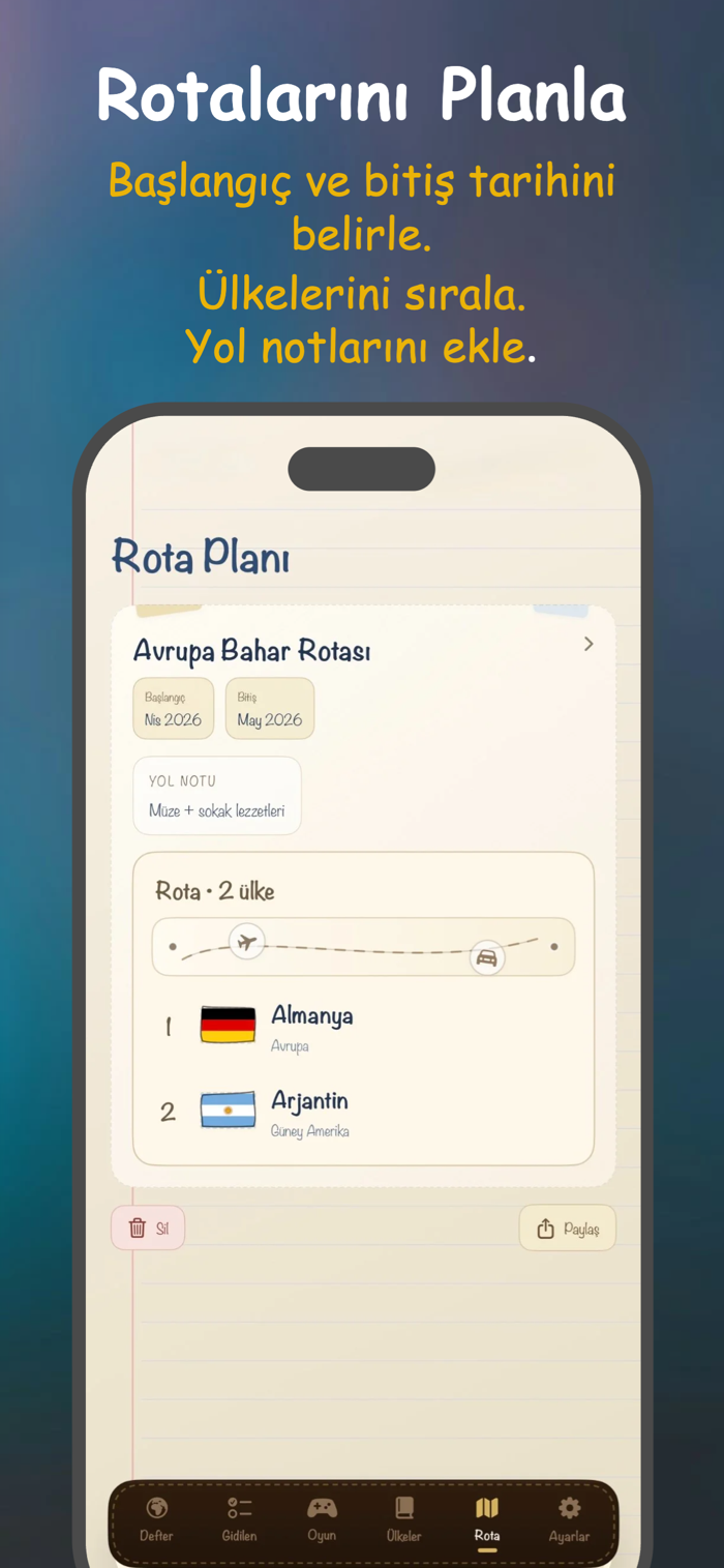• Gittiğiniz ülkeleri harita üzerinde işaretleyin