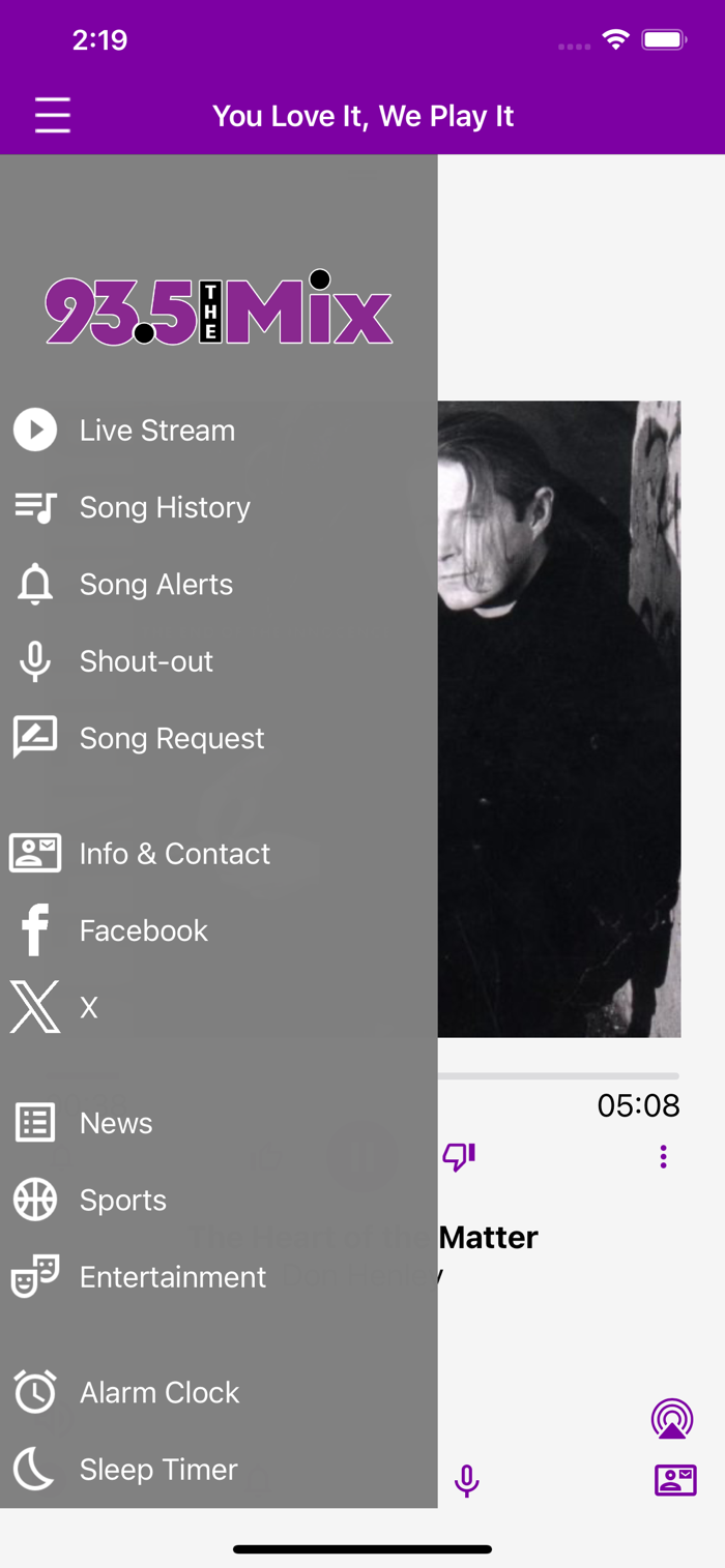 With The Mix app, you can listen live anytime and enjoy a variety of music from across the decades. Whether you're at home, at work, or on the go, 93.5 The Mix delivers the songs you know and love.