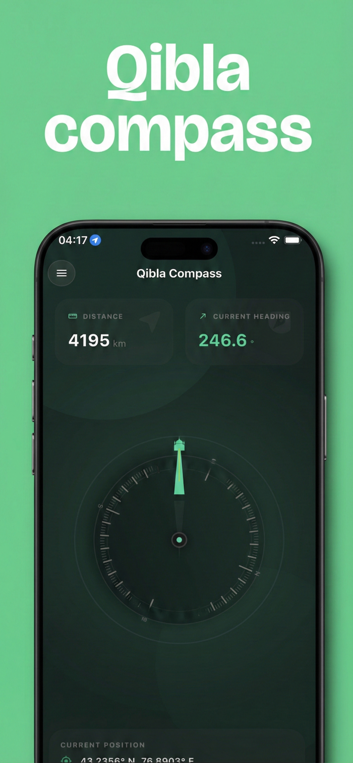 Qibla Compass: Accurate direction to the Kaaba (Mecca) right on your phone. Works anywhere in the world even without internet access.
