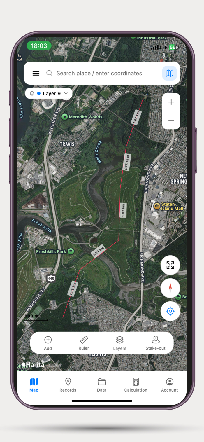 测量土地、计算距离、管理 GIS 数据并进行坐标转换,这一切都在一个快速且简洁的工作流程中完成,并针对真实的野外环境进行了优化。您可以快速记录点位、轻松创建几何图形,并在无需复杂操作的情况下访问您的数据,从而节省宝贵的现场工作时间。