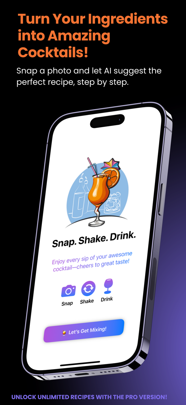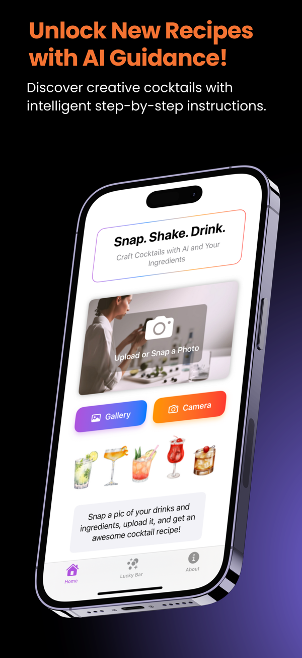 Do you love cocktails but feel overwhelmed by complex recipes or missing ingredients at home? Snap.Shake.Drink is the ultimate cocktail app that transforms your home bartending experience. Whether you're a seasoned mixologist or a beginner eager to explore the world of drinks, our app is designed to ignite your creativity and satisfy your taste buds.