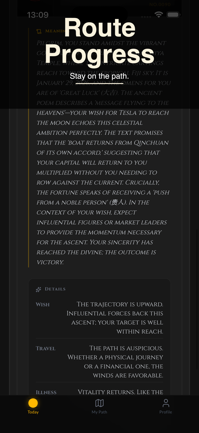 KARMA 应用集抽奖、路线规划与每日指引于一体。能进行每日运势抽奖,获人际关系、工作等方面提示。提供 1/3/5/7 天路线规划,可按地区、国家等筛选。有带每日行程的地标卡片,还有深入跟进内容及每日指引。支持英语、日语、简体中文、繁体中文,适用于旅行准备及途中,覆盖 94 个国家、1300 多个宗教文化地标,含世界遗产和标志性历史地点。
