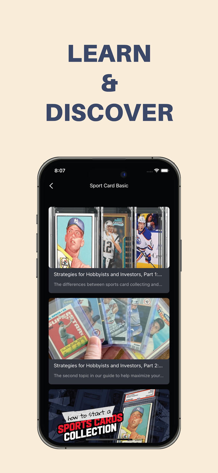 Learn & Grow — Access articles on collecting strategies, card care, and beginner tutorials.