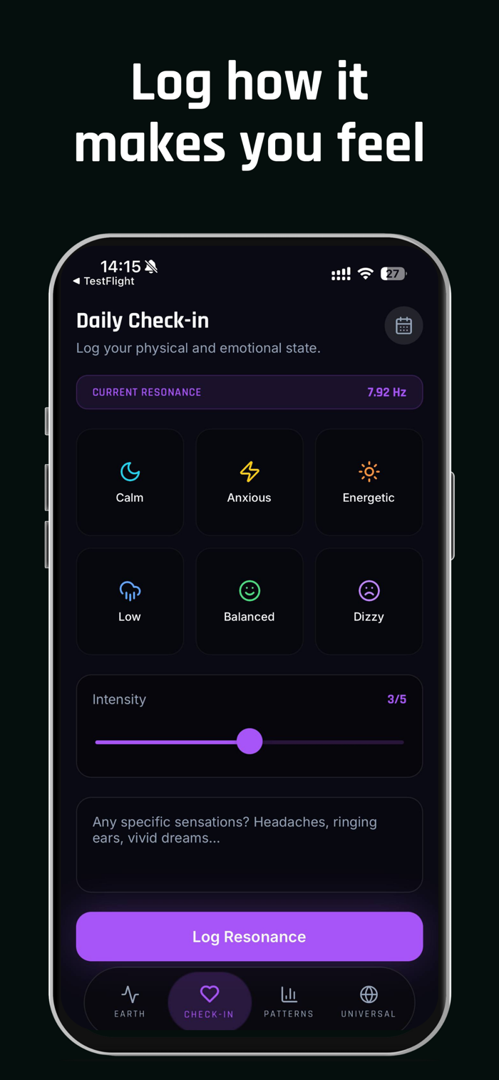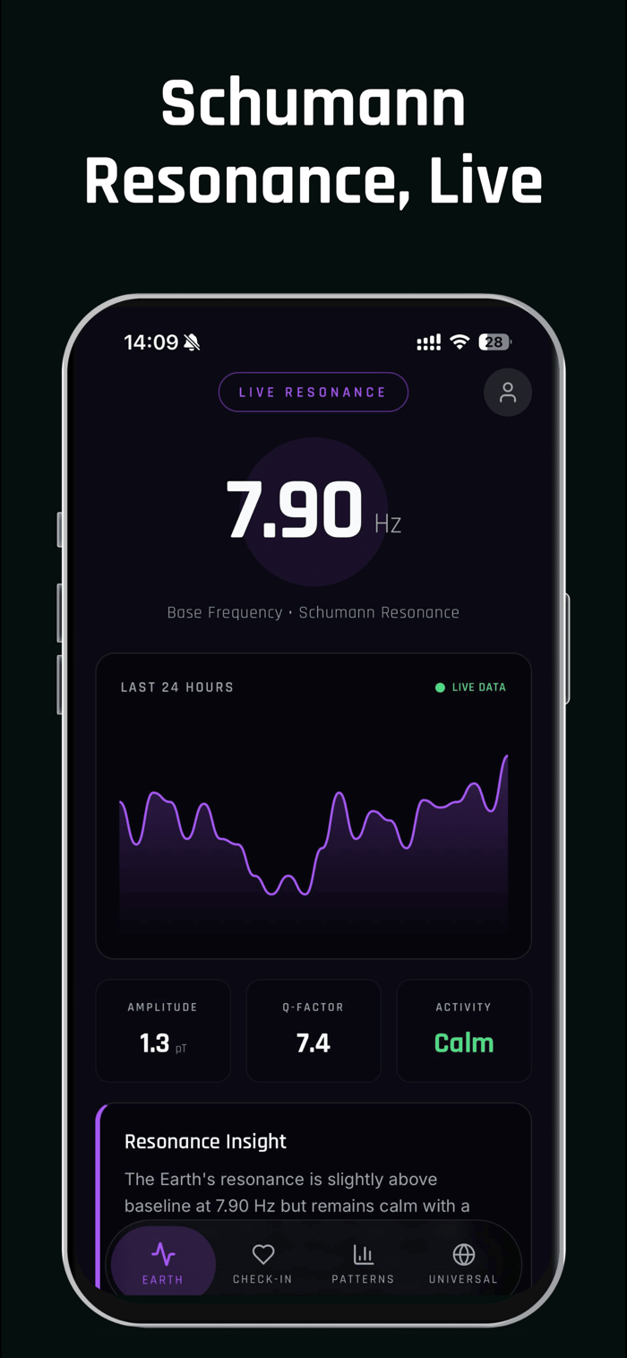 Earthwave app可让你收听舒曼共振(地球自然电磁频率),它能影响情绪、睡眠、专注度和幸福感。该应用提供实时舒曼共振数据、个性化见解及全球情绪分析。其功能包括实时监测舒曼共振频率,有24小时频率活动图表、振幅等指标,还有智能见解解释共振水平及美观可视化展示,能将舒曼共振监测数据清晰准确地呈现到你手机上。