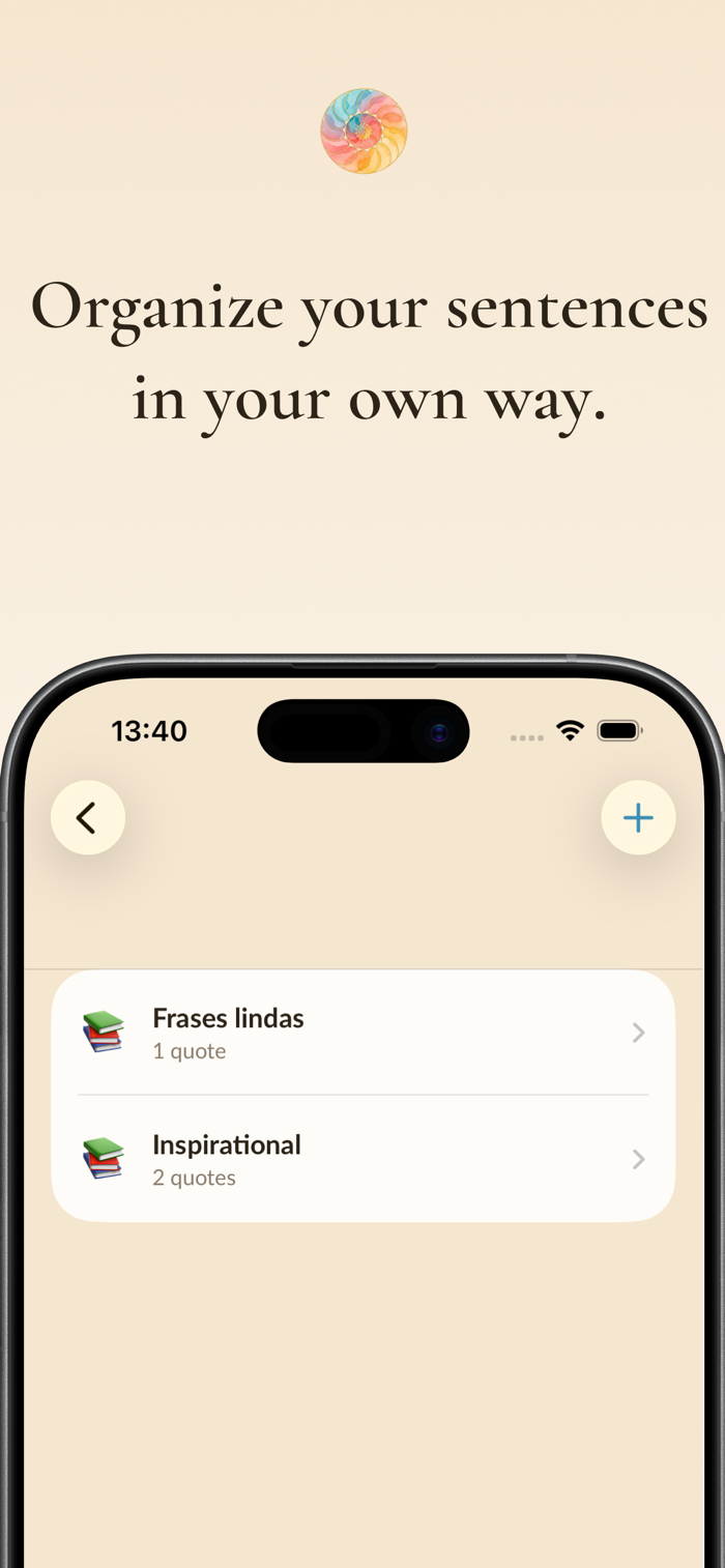 - Collections: organize your quotes by theme, moment or intention