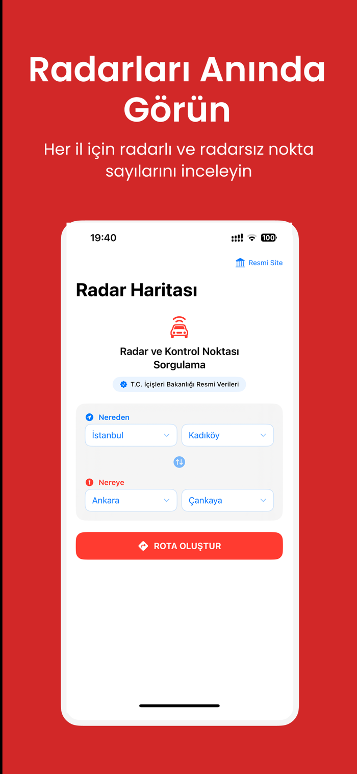 Türkiye'nin iller arası yollarındaki radar, hız kamerası ve kontrol noktalarını anlık olarak sorgulayın! Radar Haritası, T.C. İçişleri Bakanlığı'nın resmi verilerini kullanarak yolculuğunuz üzerindeki tüm radar ve kontrol noktalarını harita üzerinde gösterir. Emniyet Genel Müdürlüğü (EGM) ve Jandarma Genel Komutanlığı (JGK) tarafından sağlanan güncel verilerle, yolculuğunuzu güvenle planlayın.