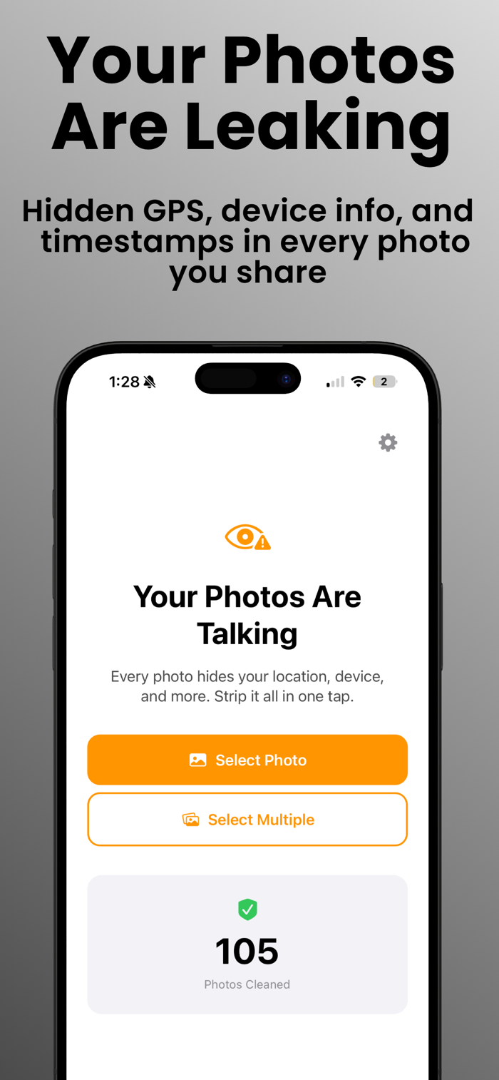 PhotoStrip shows you exactly what's hiding in your photos — then removes it all with one tap.
