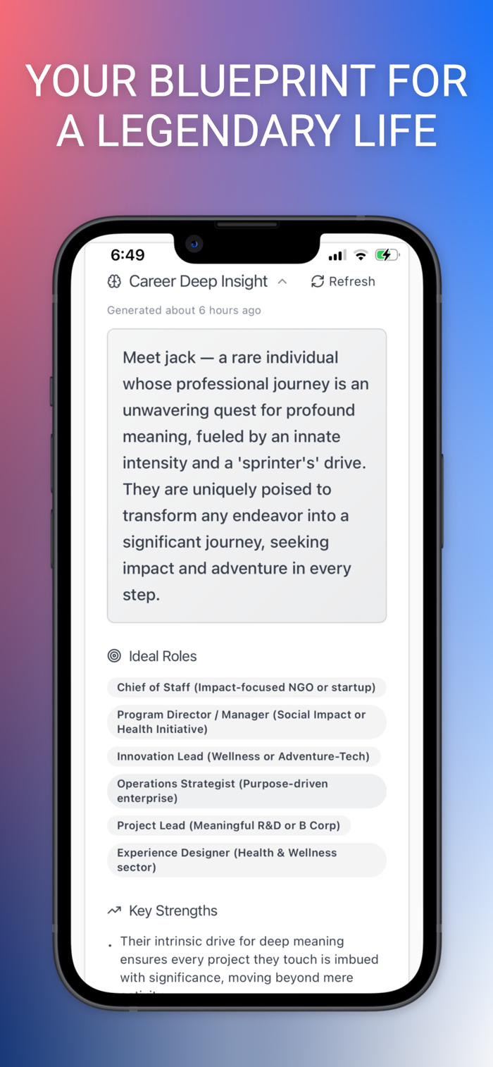 Complete 12+ world-class assessments (MBTI, Big Five, Enneagram, DISC, etc.) and unlock a living profile of your strengths, blind spots, patterns, and growth opportunities.