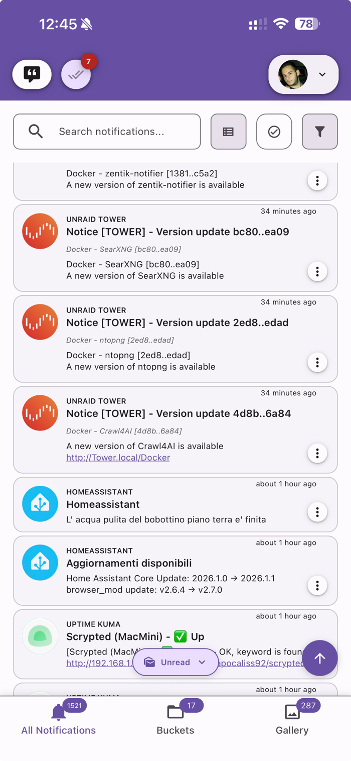 Receive push notifications from virtually any source. Zentik includes built-in parsers for many services and allows custom parsing for advanced setups, while remaining easy to use.