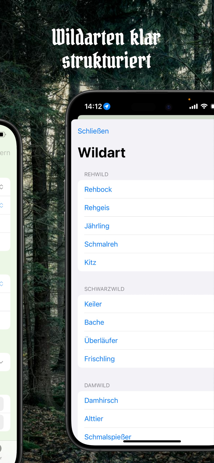 – Erfassung von Wildart, Datum, Uhrzeit, Notizen, Jagdart, Gewicht, Alter und Fotos