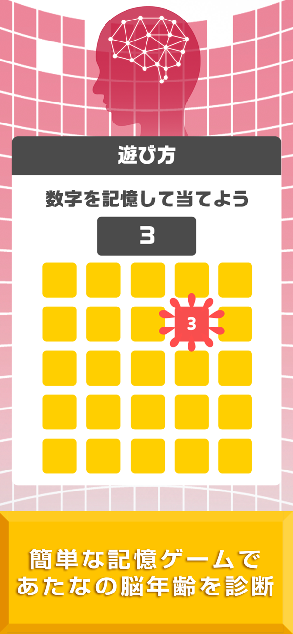 ◆数字の記憶ゲームで頭が良くなる!簡単操作のパズルゲームであなたの脳年齢を診断します。遊び方はとっても簡単。数字の配置を記憶して答えの数字をタップするだけ!遊べば遊ぶほど脳が活性化されます。あなたの脳は何歳ですか??