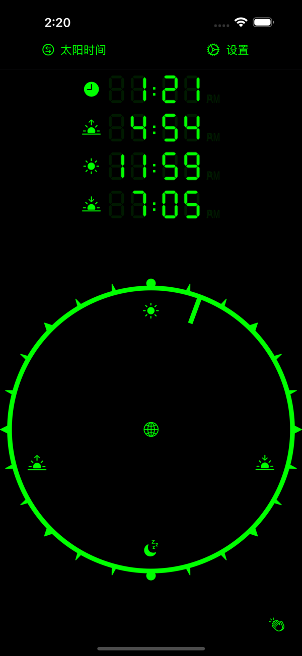 数字日晷是一款适配 iPhone、iPad 和 Apple Watch 的太阳日晷应用。能依所在位置或所选时区显示真实太阳时,24 小时圆形表盘动态展示时间,可自定义时区,显示日出等天文参考点时间,还有多种传统计时方式。界面简洁,融合复古与现代。助用户重连自然时钟,减少睡眠干扰,适合想遵循传统或追求独特时间表达的人群。
