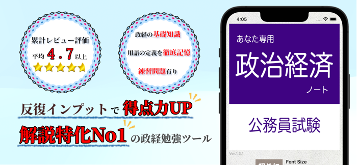 本アプリケーションは、公務員試験を経験した開発者が、参考書に書かれている基礎中の基礎の内容をわかりやすく解説しています。また、確認用の問題も用意しています。
