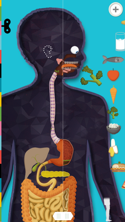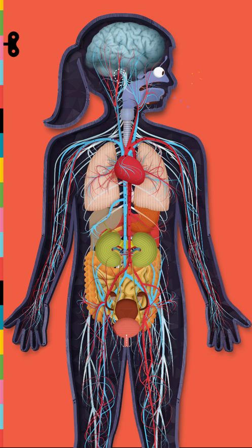 《The Human Body》探索实用人体模型。每一部分都以动画形式显示并且可以互动:心跳、肠鸣、肺的呼吸、皮肤的触感和双眼视物。本应用面向 4 岁以上的孩子,帮助他们了解人体构成和人体机能。